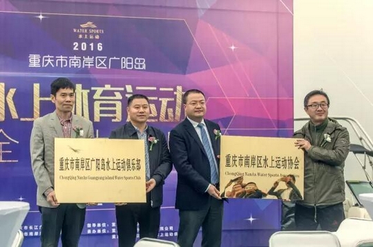 現(xiàn)場舉行授牌儀式,重慶市南岸區(qū)體育局領(lǐng)導(dǎo)李真平副局長、朱健副局長為重慶市南岸區(qū)廣陽島水上運動俱樂部和重慶市南岸區(qū)水上運動協(xié)會授牌。