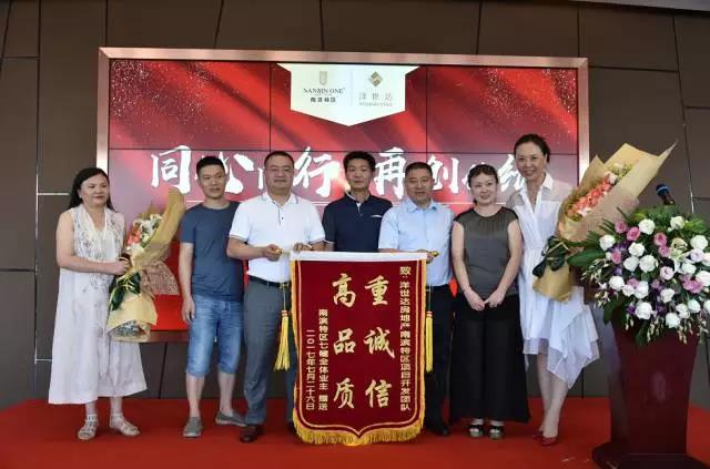 7月26日下午,南濱特區(qū)一區(qū)交付暨9號樓開盤總結(jié)表彰大會上,上演了一幕意外的插曲,南濱特區(qū)7號樓和3號樓的業(yè)主代表,為項目開發(fā)商重慶洋世達房地產(chǎn)開發(fā)有限公司送來了兩面錦旗,分別是“重誠信、高品質(zhì)”和 “鑄精品工程、創(chuàng)地產(chǎn)典范”。