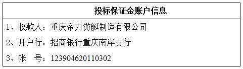 5、本次采購根據(jù)《重慶帝力游艇制造有限公司招投標(biāo)管理辦法》采用單一采購方式進(jìn)行開標(biāo)、唱標(biāo)、評(píng)標(biāo)、談判、定標(biāo)。