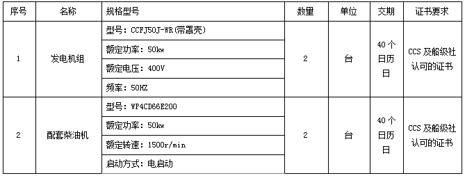 本項(xiàng)目適用于重慶帝力游艇制造有限公司:南部縣地方海事處33米應(yīng)急救援艇機(jī)電設(shè)備采購部分,該項(xiàng)已具備招標(biāo)條件,先對(duì)該項(xiàng)目進(jìn)行單一來源采購招標(biāo)。