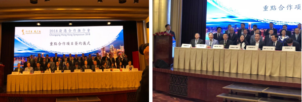 “2018渝港合作推介會”于2018年9月3日在香港舉行。重慶市長唐良智先生攜市商務(wù)委、市港澳辦、經(jīng)信委、金融辦等部門、部分區(qū)縣代表和企業(yè)家組成代表團,到港推介宣傳重慶投資環(huán)境,分享投資機遇,深化渝港經(jīng)貿(mào)領(lǐng)域合作。會上24個渝港合作重點項目集中簽約,投資總額達621億元人民幣。