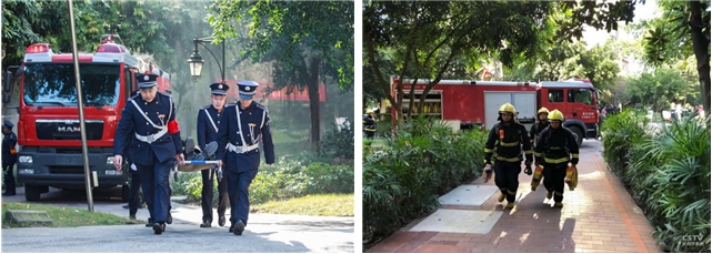 在圣天湖東區(qū)某樓幢7樓住戶家中突然起火(火災(zāi)現(xiàn)場(chǎng)情景模擬),濃煙滾滾。現(xiàn)場(chǎng)開啟了一場(chǎng)生命與時(shí)間的賽跑,一場(chǎng)火災(zāi)消防應(yīng)急救援演習(xí)正式拉開了帷幕。