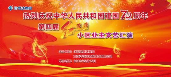 重慶洋世達(dá)物業(yè)管理有限公司第四屆小區(qū)業(yè)主文藝匯演于2019年5月15日上午9:30在陽(yáng)光華庭羅馬廣場(chǎng)隆重舉行,今年恰逢新中國(guó)成立70周年之際,活動(dòng)以“慶祝中華人民共和國(guó)建國(guó)70周年”為主題,小區(qū)業(yè)主通過(guò)豐富多彩的文藝節(jié)目表演,向新中國(guó)獻(xiàn)上一份特殊的生日禮物!