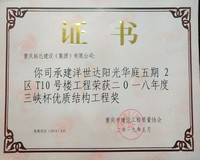 ? 2019年5月,洋世達陽光華庭五期2區(qū)T10號樓工程榮獲重慶市建筑工程質(zhì)量協(xié)會頒發(fā)的“二O一八年度三峽杯優(yōu)質(zhì)結(jié)構(gòu)工程獎”