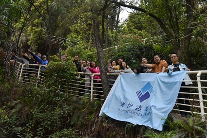 午餐后,大家一起向壹華里“南坪鐘”景點(diǎn)進(jìn)發(fā)。一路上空氣清新、山色郁郁蔥蔥,同事們沿著登山石階攜手前進(jìn)。站在山頂上,南岸四公里景致一覽無遺,洋世達(dá)·南濱特區(qū)超高層也遙遙在望。