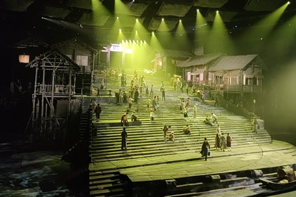 《重慶·1949》舞臺劇是以重慶解放當(dāng)日為大背景,講述了眾多被關(guān)押在渣滓洞、白公館的中共共產(chǎn)黨人,經(jīng)受住種種酷刑折磨,不折不撓、寧死不屈的故事,再現(xiàn)了中國人民解放軍解放重慶,并與重慶人民一起保衛(wèi)城市的宏大場景。