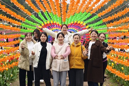 活動(dòng)伊始,員工們來(lái)到了菩提山下開(kāi)展了趣味十足的團(tuán)建小活動(dòng),大家都表現(xiàn)積極,踴躍參與。小游戲“破冰分組”、“爬山比賽”不僅考驗(yàn)了員工們的團(tuán)隊(duì)協(xié)作能力和反應(yīng)能力,更讓她們?cè)谳p松愉悅的氛圍中放開(kāi)了束縛,拋去了工作中的壓力,感受到了生活的小確幸。活動(dòng)之余,員工們來(lái)到了長(zhǎng)壽湖欣賞五彩斑斕的郁金香花海,層層花海馥郁芬芳,一朵朵花球在風(fēng)中搖曳輕擺,花姿優(yōu)雅、色彩繽紛,紅的熱情奔放,紫的高貴優(yōu)雅,白的純凈溫柔。員工們?cè)诨êV信恼樟裟?,歡聲笑語(yǔ)不斷,大家盡情享受著這份來(lái)自大自然的美好饋贈(zèng)。