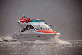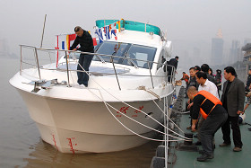 2010年11月11日16:50時(shí),隨著清脆的笛音、參觀人群的歡呼聲、照相機(jī)的咔嚓聲,重慶市有史以來(lái)自主建造的最大規(guī)格豪華游艇--“躍浪”順利??吭谀蠟I路驕陽(yáng)游艇俱樂(lè)部游艇碼頭。