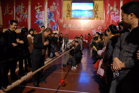 拔河對抗賽,是公司歷年“春節(jié)年拜會”上的傳統(tǒng)經(jīng)典項目。下午1點30分,比賽戰(zhàn)鼓敲響,集團公司、各子公司分別組成8支參賽隊伍,進行分組對抗賽。比賽現(xiàn)場,參賽隊員摩拳擦掌,齊心協(xié)力,干勁十足;啦啦隊員吶喊助威,加油鼓勁,全情投入,掀起了一輪又一輪的高潮。經(jīng)過緊張激烈的多輪對抗賽,物管公司蟬聯(lián)第一名,集團公司、帝力公司分獲二、三名。對抗賽結束后,由各公司優(yōu)秀隊員組成的“明星聯(lián)隊”,還與冠軍隊進行了一場頗具實力的拔河表演賽。集團公司領導現(xiàn)場為獲獎者頒獎。