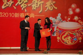 2010年2月11日,南岸美心洋人街金色大廳歡聲笑語、一片歡騰,以“龍騰虎躍賀新春”為主題的“洋世達集團2010年春節(jié)年拜會”在這里熱烈舉行?;顒訌南挛?點30分開始,至晚上8點結束,主要活動內(nèi)容有拔河對抗賽、文藝匯演和互動游戲、以及迎新年晚餐等。集團公司全體領導,各部門、各子公司員工及部分家屬共500多人歡聚一堂,辭舊迎新,共同慶祝新春佳節(jié)的到來。