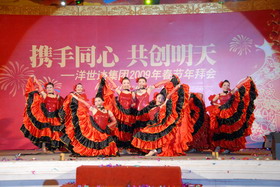 精彩的文藝匯演于下午2:30在金色大廳準時開始。首先,集團公司董事長、總裁楊勇先生發(fā)表了熱情洋溢的新年賀辭,并宣布文藝演出正式開始。在12個文藝節(jié)目表演過程中,各個公司都拿出了看家本領(lǐng),表演了自編自演、精心排練的舞蹈、小品、詩歌朗誦、獨唱等文藝節(jié)目。全體觀眾認真觀賞、熱情喝彩,掌聲、歡呼聲不斷。表演過程中的兩輪抽獎活動,更是中獎多多,讓大家臉上充滿了節(jié)日的笑容,一片快樂祥和!