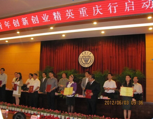 2012年6月3日上午,由共青團重慶市委、重慶市青年聯(lián)合會、重慶市青年企業(yè)家協(xié)會、重慶市青年商會、重慶市青年創(chuàng)新創(chuàng)業(yè)基金會主辦的“中國青年創(chuàng)新創(chuàng)業(yè)精英重慶行”啟動儀式暨青年創(chuàng)新創(chuàng)業(yè)導(dǎo)師團首場報告會在重慶大學(xué)民主湖學(xué)術(shù)報告廳舉行。重慶市人大常委會黨組副書記、副主任余遠牧,中國工程院院士、中國科協(xié)副主席、全國青聯(lián)副主席、中星微電子有限公司董事長鄧中翰,重慶市委副秘書長羅慶宏等相關(guān)領(lǐng)導(dǎo)出席了啟動儀式,本次啟動儀式由共青團重慶市委書記、黨組書記周波主持。
