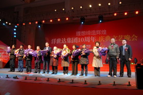 慶祝大會結(jié)束后,進(jìn)行了精彩的文藝演出。演出分為夢想起航、成就夢想、放飛夢想三大篇章,展現(xiàn)了洋世達(dá)集團(tuán)十年成長的風(fēng)雨歷程,表達(dá)了全體洋世達(dá)人的喜悅之情,共同祝愿集團(tuán)公司10周歲生日,并在未來的日子里再創(chuàng)新的輝煌。伴隨著集體大合唱的歌聲,文藝演出完美謝幕。隨后,舉行了答謝晚宴。整個10周年慶典活動取得圓滿成功!