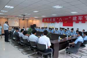 為慶祝中國人民解放軍建軍80周年,集團公司于8月1日組織召開了慶?!鞍艘弧苯ㄜ姽?jié)座談會。集團公司、物管公司有關(guān)領(lǐng)導(dǎo),以及集團公司預(yù)備役軍人、各子公司復(fù)員退伍軍人、物管公司部分保安隊員參加了會議。會上,宣讀了集團公司致全體預(yù)備役軍人、復(fù)員退伍軍人、保安隊員的慰問信。與會人員紛紛發(fā)言,抒發(fā)自己的個人感想,表達作為一名軍人的壯志豪情,以及在洋世達集團大家庭里快樂工作和生活的深切感受。集團公司副總裁張志興出席會議并作了重要講話,他說:一年一度的“八一”建軍節(jié)慶?;顒?,已成為洋世達集團企業(yè)文化的重要組成部分;他代表集團公司全體領(lǐng)導(dǎo)向大家致以節(jié)日的祝賀,并對大家在工作中的出色表現(xiàn)和付出的辛勤勞動表示衷心感謝!希望大家繼續(xù)發(fā)揚人民軍隊的光榮傳統(tǒng)和優(yōu)良作風(fēng),為企業(yè)發(fā)展繼續(xù)作出新的貢獻!座談會結(jié)束后,進行了精彩的文藝節(jié)目表演和熱烈的聚餐交流活動。