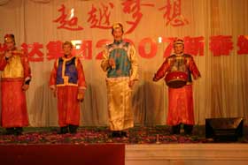 精彩的文藝匯演于下午2:30在金色大廳準時開始。一陣熱鬧的大鼓后,一群可愛的孩子快樂登場給大家拜大年。集團公司董事長、總裁楊勇發(fā)表了熱情洋溢的新年賀辭,并宣布文藝匯演正式開始。在16個文藝節(jié)目表演過程中,各個公司都拿出了看家本領,表演了自編自演、精心排練的舞蹈、小品、獨唱、諧劇、時裝秀等文藝節(jié)目?,F(xiàn)場內,全體觀眾認真觀賞一個個精彩的節(jié)目,興奮地參加游戲,臉上充滿了笑容,一片快樂祥和!