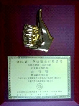 9月21日晚7點,羅明德總工程師參加了由中華建筑金石獎活動委員會在臺灣舉辦的第23屆中華建筑金石獎頒獎典禮。重慶“洋世達(dá)•南濱特區(qū)”項目,榮獲了“頂尖居住品牌類金石獎”。