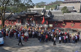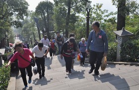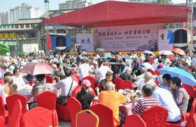 本次參加活動的四百多位老年朋友,剛?cè)牖字暾呱癫赊绒?,已邁耄耋之歲者精神矍鑠,大家或歌于途、三五成群、走走停停,登高望遠(yuǎn)、敬香祈福。活動在菩提古鎮(zhèn)上掀起高潮,千叟齊聚一堂,歌舞助興,大家舉杯共祝老人們節(jié)日快樂,健康長壽!